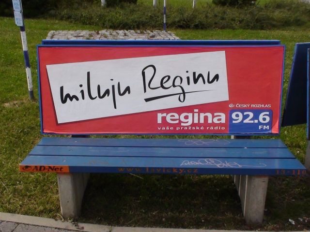 Pokud ji správně naladíte na svém přístroji, pak ji zřejmě musíte milovat, jak je patrno z reklamního sloganu na pražských lavičkách. Řeč je samozřejmě o stanici rádia Regina na 92,6 FM. Můžete ji poslouchat i na internetu, stejně jako řadu dalších stanic, stačí si vybrat : www.play.cz/