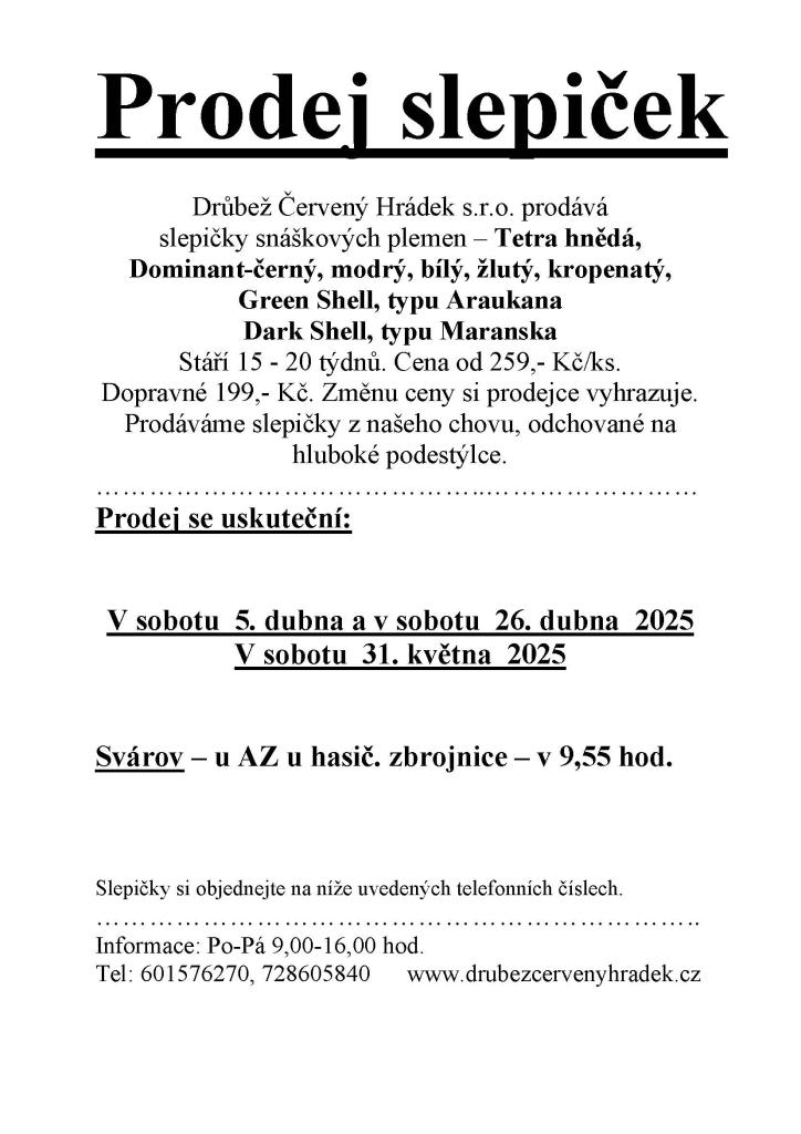Prodej slepiček snáškových plemen
